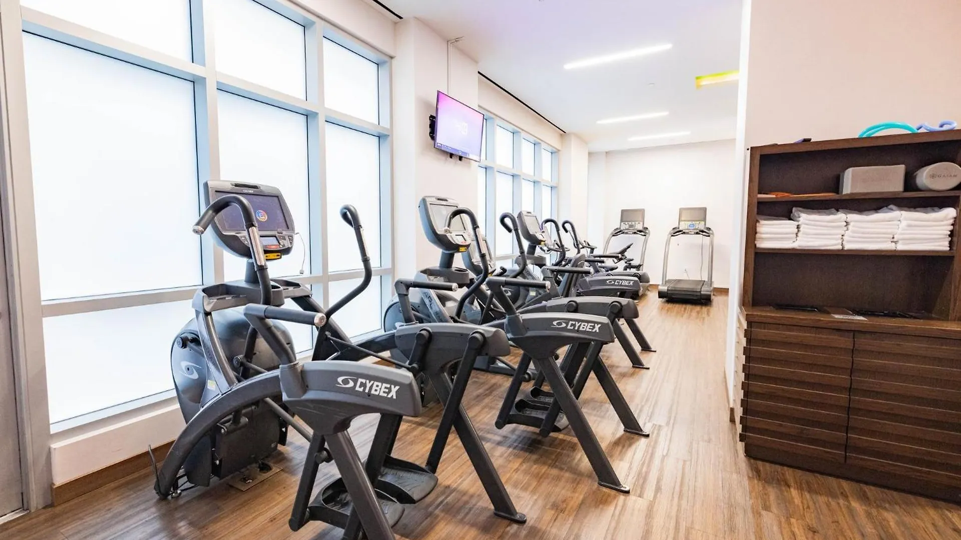 Guests can work out in a gym during their stay.